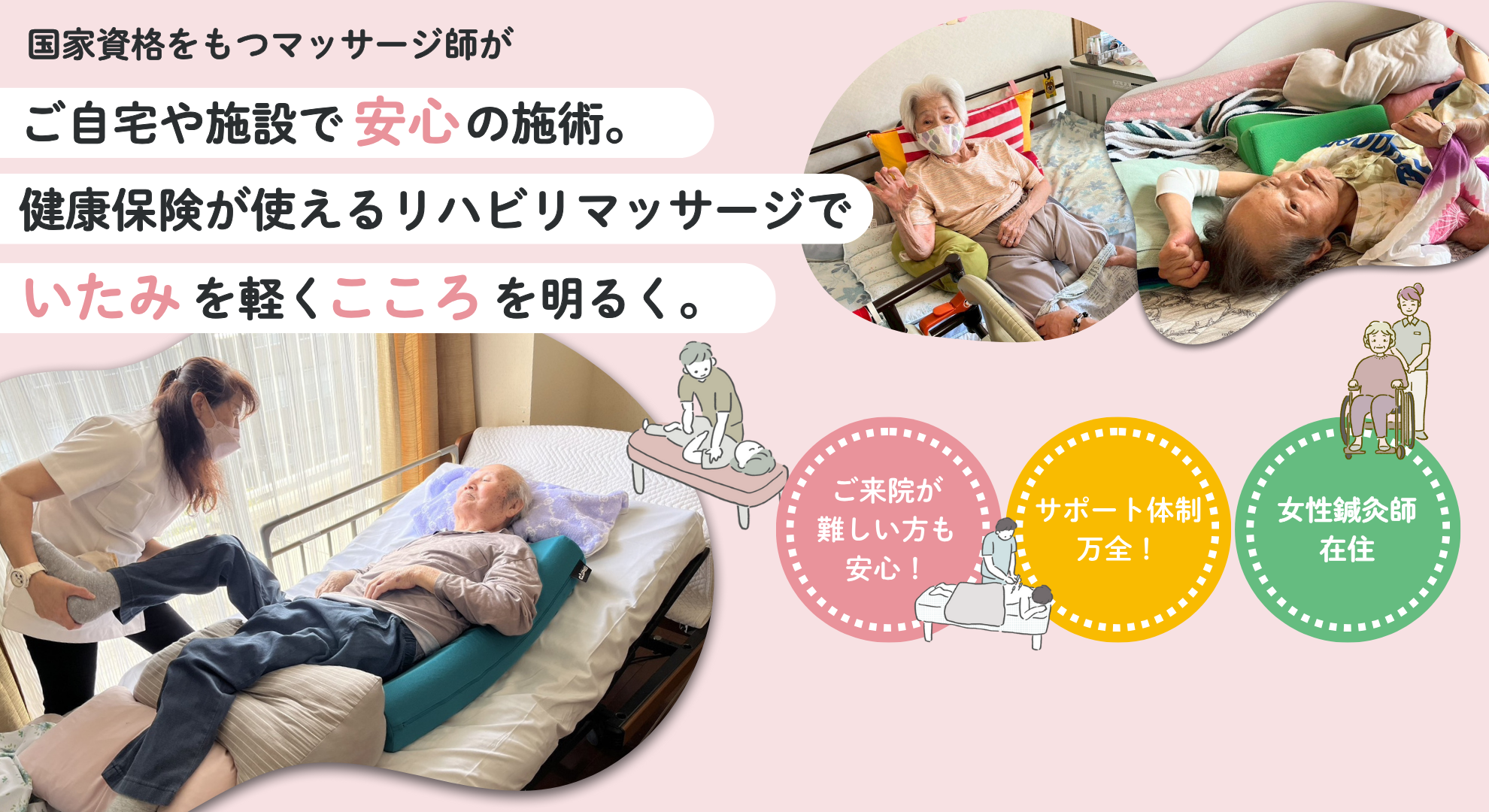 訪問鍼灸マッサージ うきうきは訪問でのリハビリマッサージを専門とする治療院です。